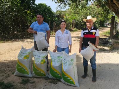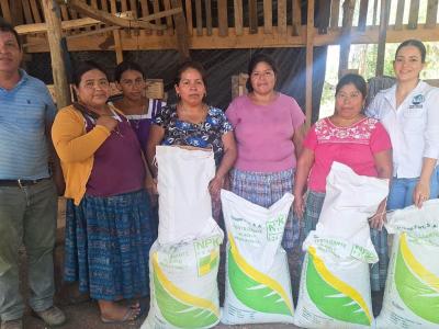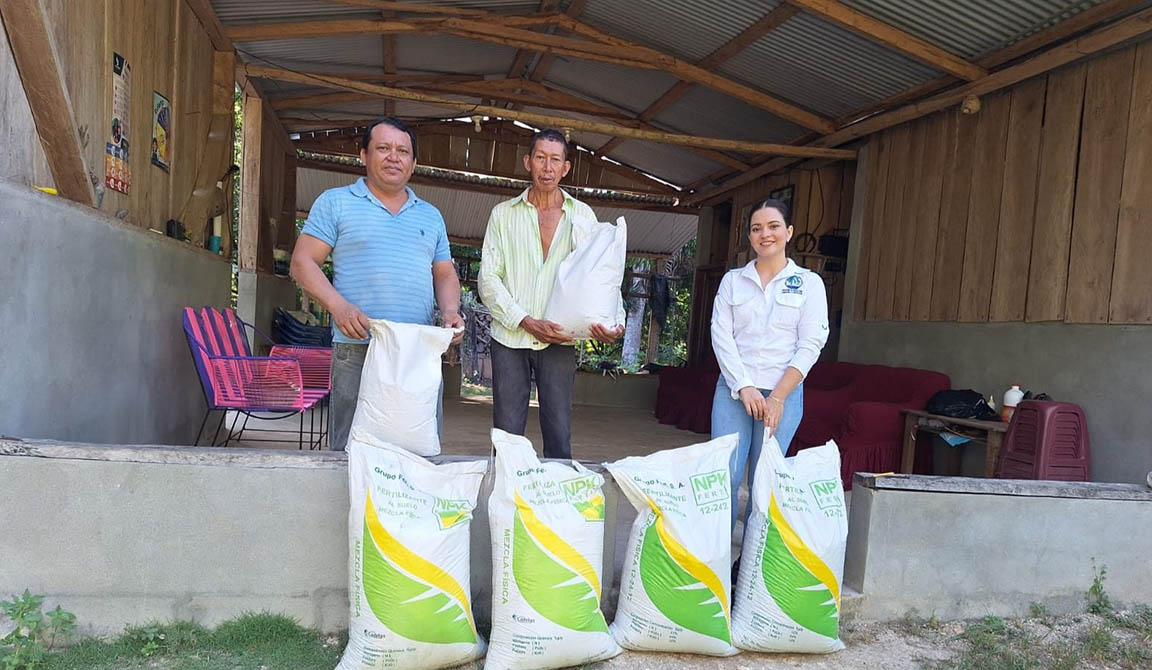 Con la entrega de semilla de maíz ICTA y con fertilizante, insumos que serán utilizados para establecer parcelas demostrativas de maíz, fueron beneficiadas diez familias que pertenecen a las comunidades de El Paraíso, Las Mojarras II, El Esfuerzo, El Quetzalito, La Oriental, La Amistad y Santa Amelia, así como de la cooperativa Las Flores, del municipio de El Chal, Petén.