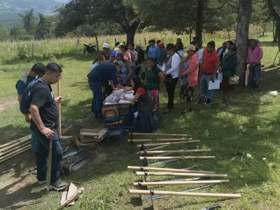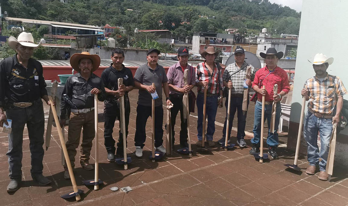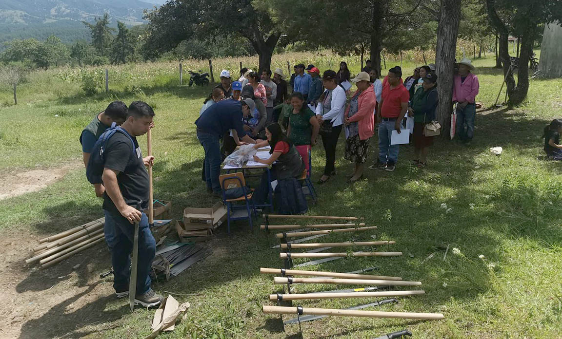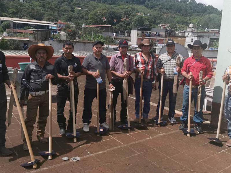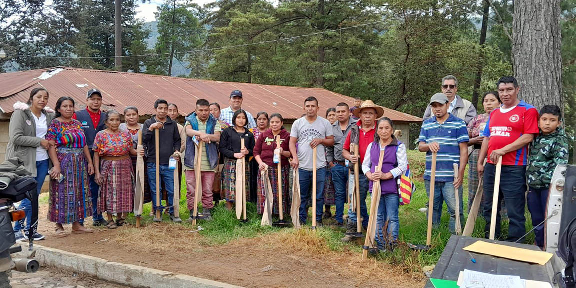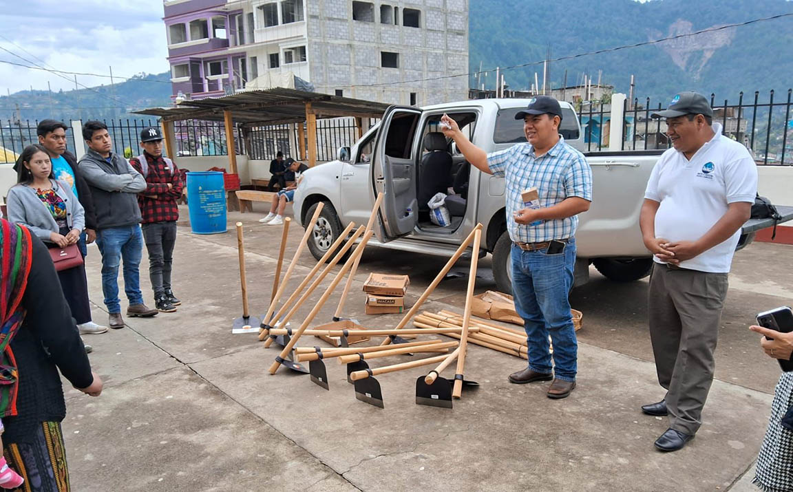 Se distribuyeron machetes, azadones y semillas de cilantro, cebolla, chile pimiento, tomate y güicoy, a 45 familias de la comunidad Quiaquizuyal, Malacatancito, Huehuetenango, así como 386 familias de la aldea Valentón y del cantón Los Mérida, en el municipio Unión Cantinil, Huehuetenango.