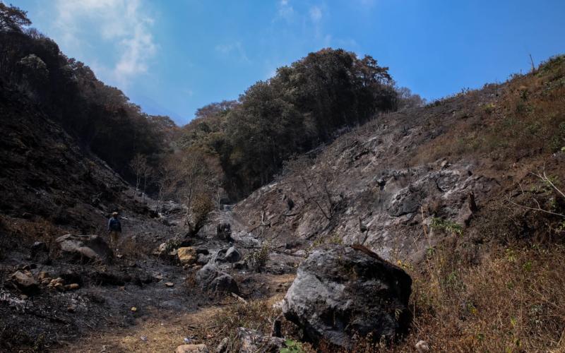 El Ministerio de Agricultura, Ganadería y Alimentación implementa estas acciones luego de que los extensionistas de la sede departamental de Sacatepéquez, recorrieran áreas en las faldas del volcán de Agua para verificar daños por el incendio registrado.