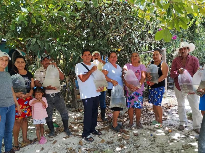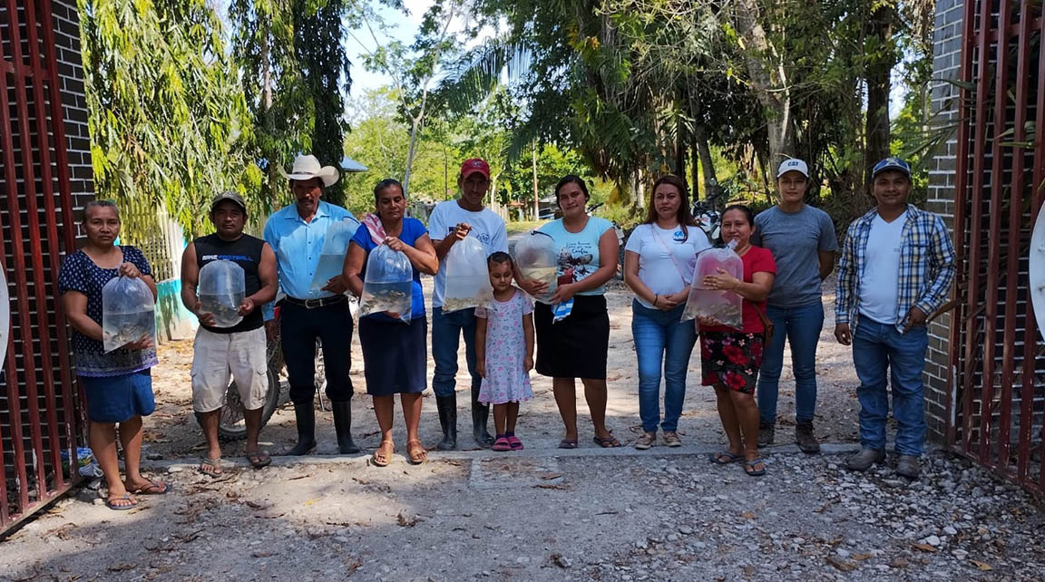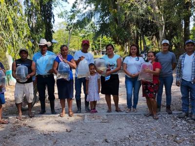 Como parte de las acciones para fortalecer la seguridad alimentaria y promover el desarrollo productivo en las comunidades rurales, 21 familias de la comunidad Grano de Oro, en el municipio de Melchor de Mencos, fueron beneficiadas con la entrega de 1050 alevines para fortalecer su actividad de acuicultura artesanal.