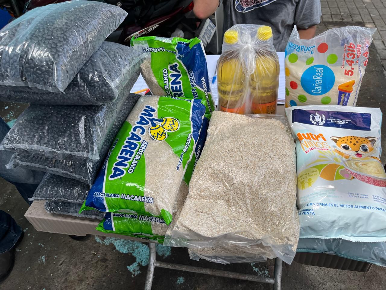 Cada ración de alimentos entregada contiene: 6 bolsas de frijol negro de 5 libras; 2 bolsas de arroz blanco de 10 libras; 1 bolsa de harina de maíz nixtamalizada de 25 libras; 2 botellas de aceite vegetal de 800 ml; 3 bolsas de hojuelas de avena de 1 kilogramo; 1 bolsa de azúcar fortificada con vitamina “A” de 2,500 gramos y 2 bolsas de mezcla de harina de maíz soya fortificada de 1.5 kilogramos.