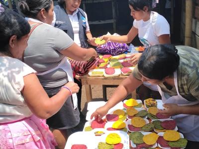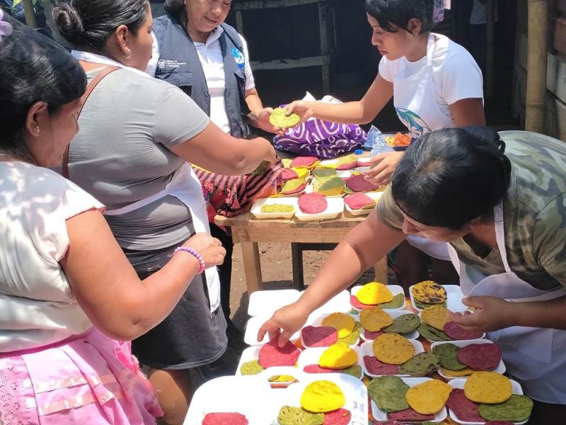 Dicha formación, liderada por extensionistas de la Agencia Municipal de Extensión Rural (AMER), consistió en la preparación de arroz con chipilín y tortillas enriquecidas con zanahoria, remolacha y chipilín.