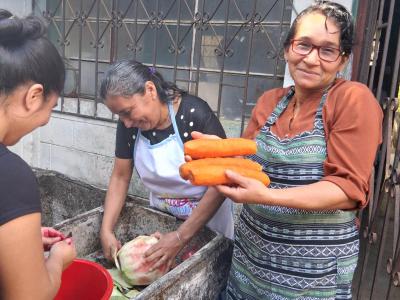 Como resultado de las acciones para mejorar la salud alimentaria, familias del caserío Río Negro, municipio de Villa Canales, Guatemala, participaron en un taller práctico para la elaboración de tortillas nutritivas a base de zanahoria, remolacha y espinaca.