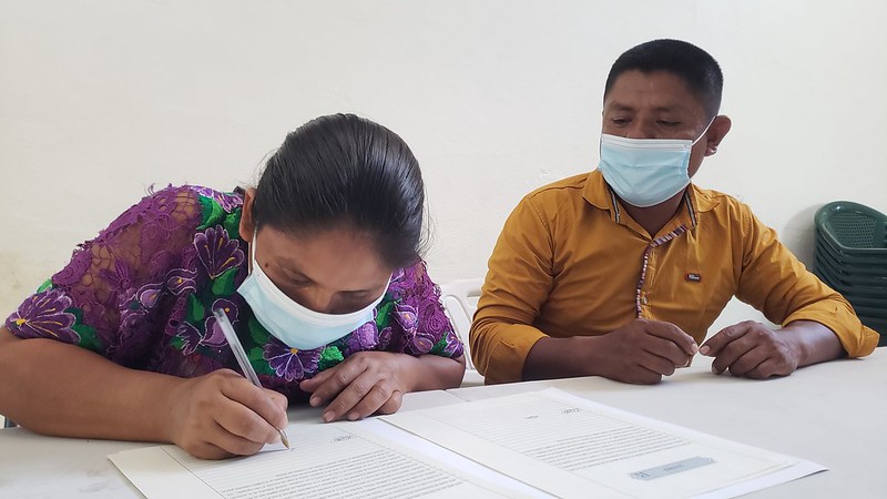 Recientemente asistieron a la Oficina Regional del Fondo de Tierras Petén, para firmar las Escrituras y luego la Unidad de Servicios Notariales solicita al Registro General de la Propiedad -RGP-, inscribir los documentos proceso que culmina al otorgar certeza jurídica de la tierra que posesiona las familias solicitantes.