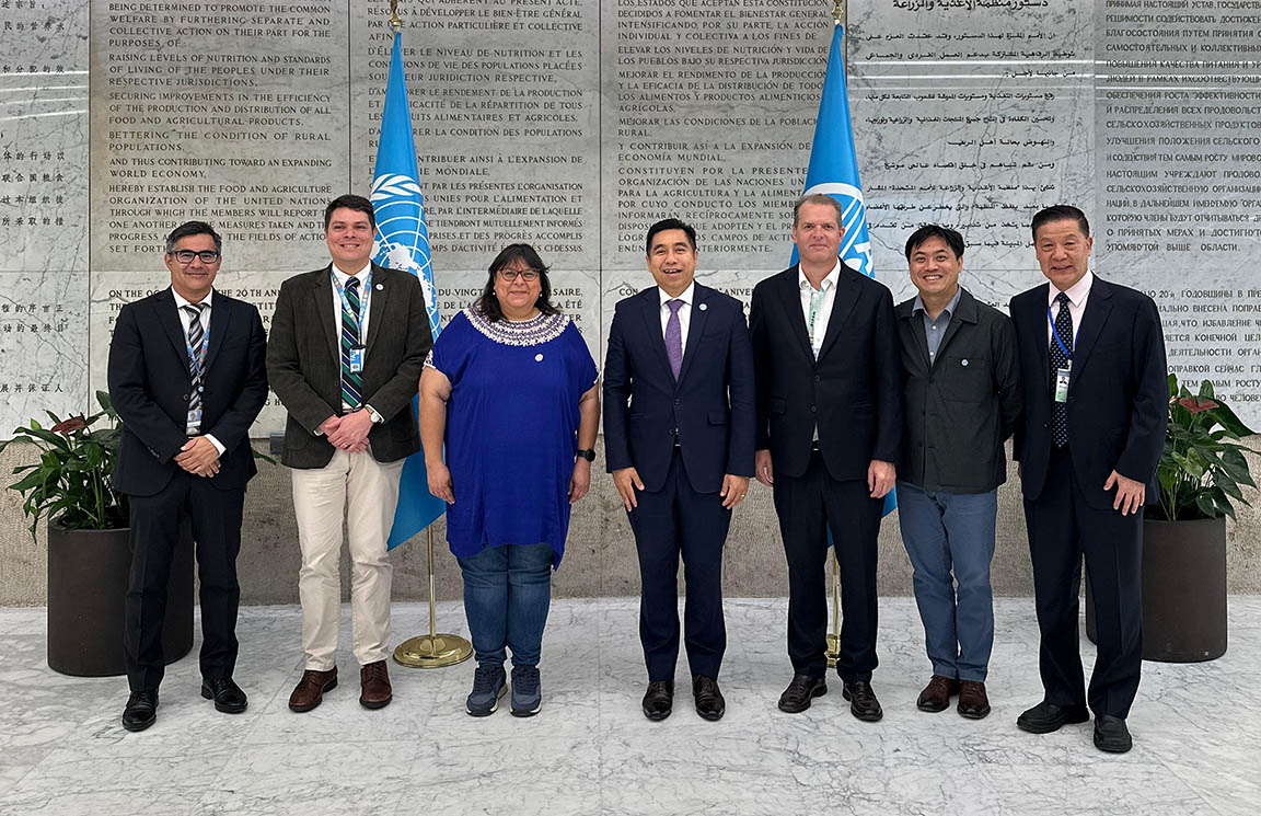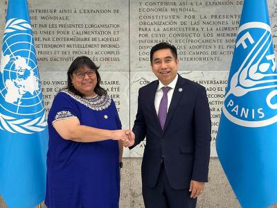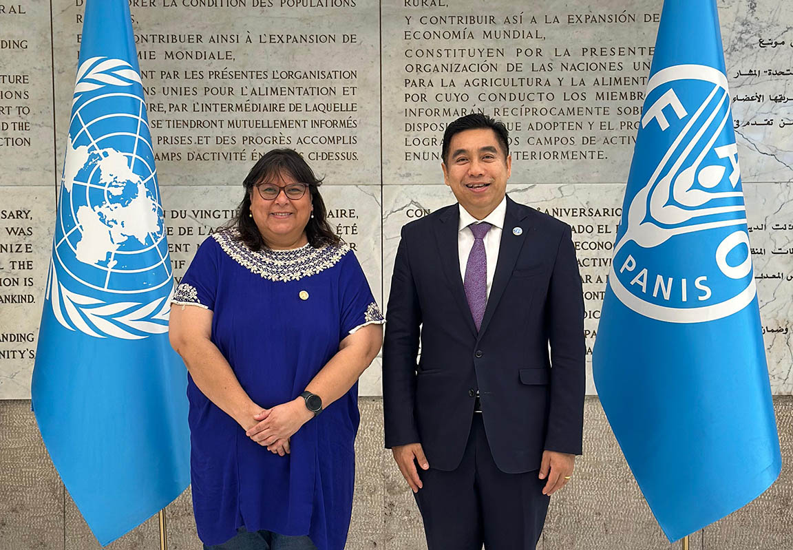 La viceministra visitó Roma esta semana y se reunió con Thanawat Tiensin, director de la División de Producción y Salud Animal y veterinario jefe de la FAO, con quien consolidó apoyo para fortalecer la bioseguridad en aves de traspatio, en acciones regionales contra el gusano barrenador y diversas capacitaciones.