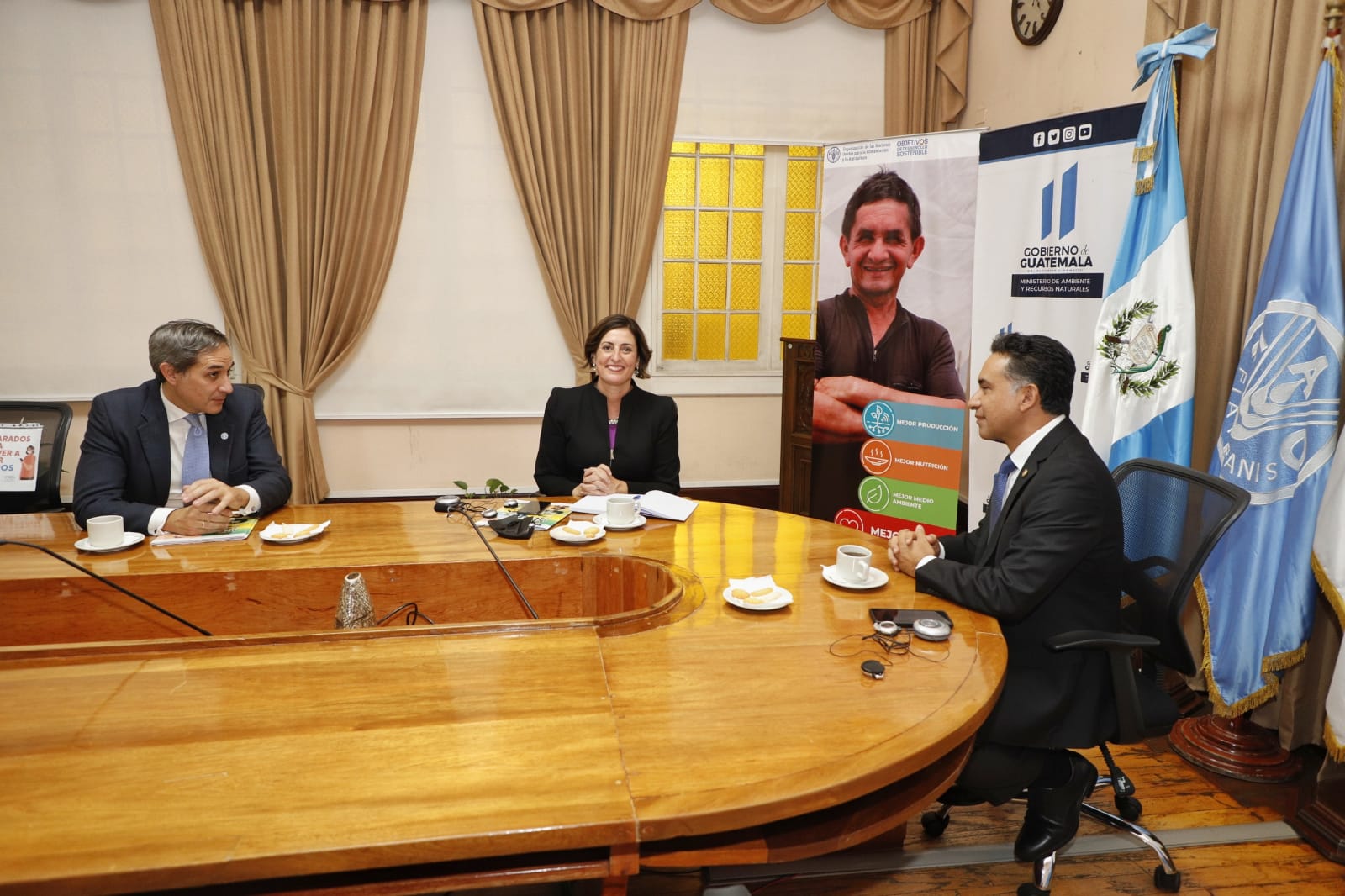 Mario Rojas Espino, ministro de Ambiente y Recursos Naturales, sostuvo una reunión con la directora General Adjunta del Fondo de las Naciones Unidas para la Alimentación y la Agricultura (FAO, en inglés), Beth Bechdol, y con Ricardo Rapallo representante de dicha entidad en Guatemala.