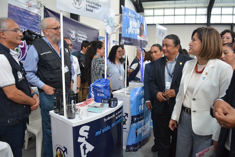 Los funcionarios recorrieron los stands informativos colocados en esta feria, los cuales permitieron ampliar conocimientos a los presentes sobre el cuidado de su salud y hábitos de vida saludable.