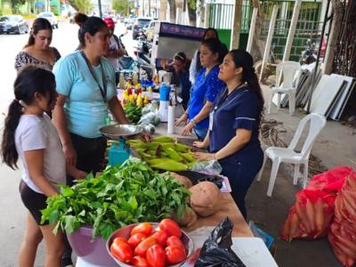 La feria también incluyó la venta de platillos tradicionales como chuchitos y empanadas, integrando la gastronomía local con la oferta de productos básicos.