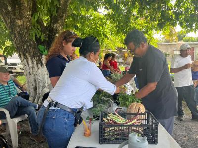 En la parte comercial de la actividad, se contó con la participación de 12 agricultoras y agricultores, quienes vendieron productos frescos como: frutas y verduras, lácteos (quesos), tamalitos de chipilín y frijol tierno.