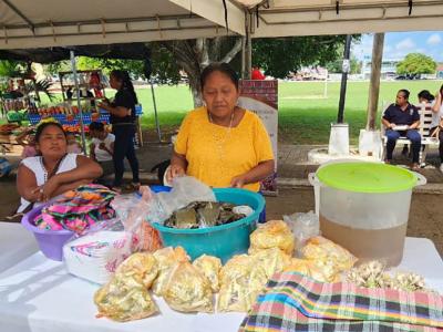Los asistentes a la feria disfrutaron de una variada oferta de productos frescos y elaborados, como bollitos de chipilín, chuchitos de pollo, tamales de gallina y bollitos de frijol, además de artesanías y manualidades creadas por manos locales.