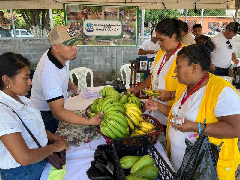 Los productos que ofrecieron las y los participantes fueron: bananos, güisquil, pepinos, berenjenas, rábano, tomate, limón, hortalizas varias, huevos, entre otros, a precios accesibles.