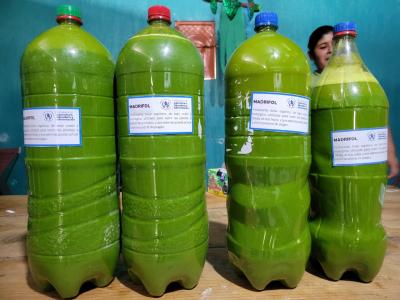 Dicho fertilizante se elabora a partir de hojas de madre cacao (Gliricidia sepium), cal y detergente, ingredientes que aprovechan recursos locales y reducen el uso de insumos químicos en los cultivos de hortalizas.