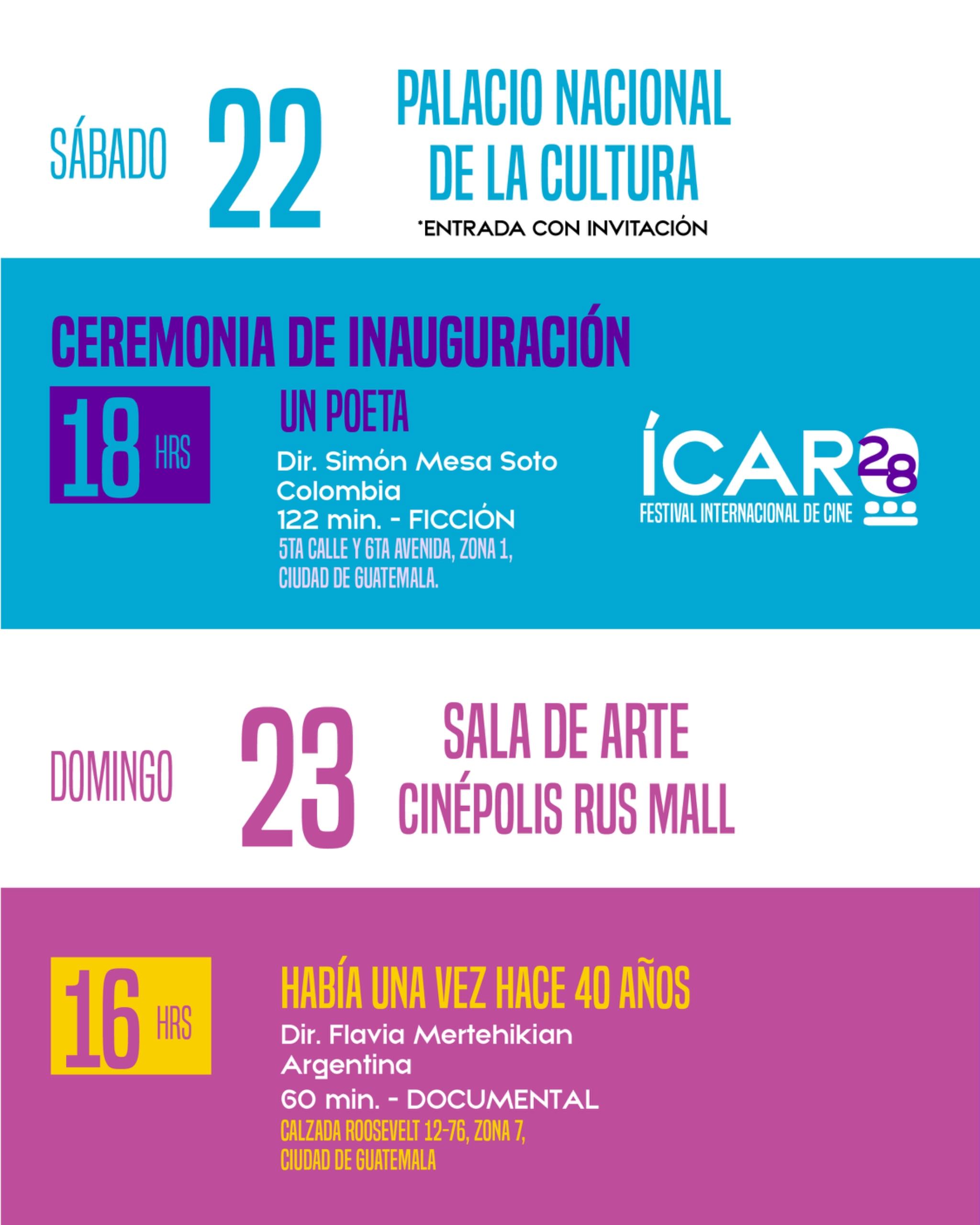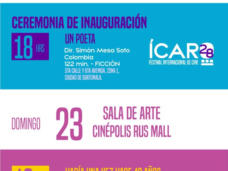 El Ministerio de Cultura y Deportes (MCD) y la Casa de Producción Ícaro presentan la vigésimo octava edición del Festival Internacional de Cine Ícaro, cuya inauguración es el 22 de noviembre de 2025 en el Palacio Nacional de la Cultura.