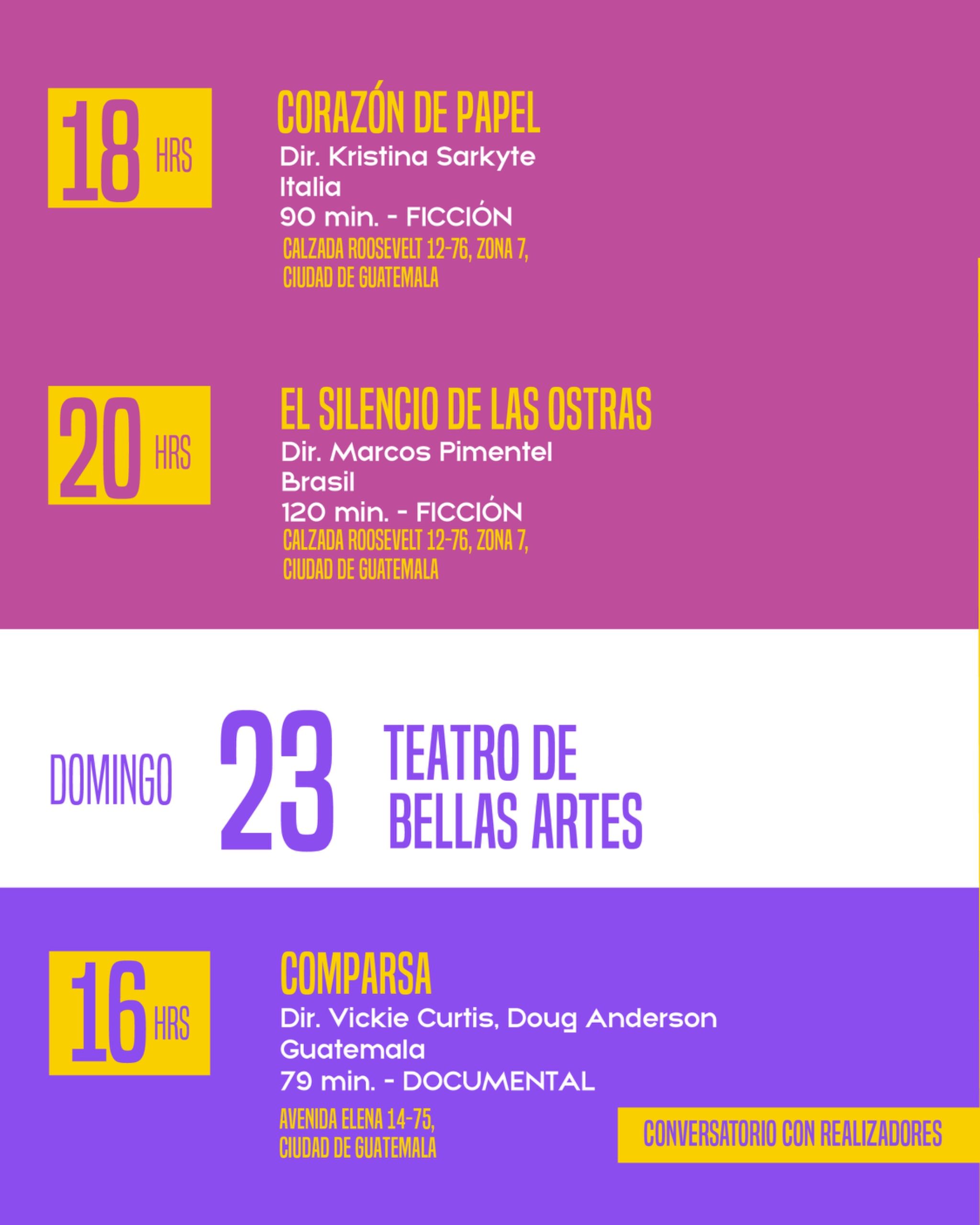 Esta edición está dedicada a la descentralización del cine, impulsando su fortalecimiento en las regiones de los departamentos del país y la proyección internacional del cine guatemalteco. Colombia participa como país invitado en conmemoración de los 200 años de relaciones diplomáticas con Guatemala.
