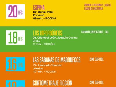 Esta edición está dedicada a la descentralización del cine, impulsando su fortalecimiento en las regiones de los departamentos del país y la proyección internacional del cine guatemalteco. Colombia participa como país invitado en conmemoración de los 200 años de relaciones diplomáticas con Guatemala.