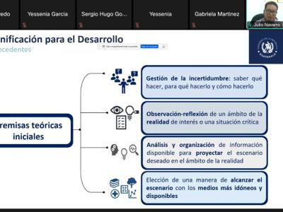 La formación académica estuvo a cargo de los tutores Yessenia Paola Zamora Santos, jefe del departamento de Planificación del Desarrollo Político y Allan Esahú Medrano Lainez, Especialista de Programación Sectorial y Territorial, quienes desarrollaron entre otros temas, el Marco Normativo, Planificación estratégica, Planificación Multianual y Operativa y el uso de las herramientas de planificación.