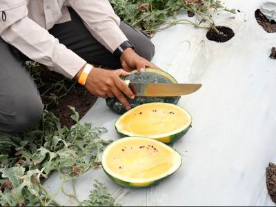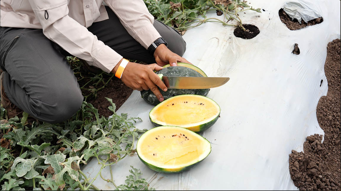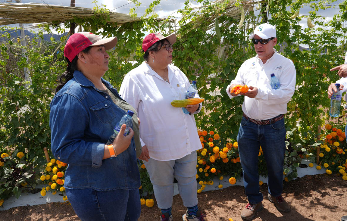 En la finca se observaron cultivos de tomate, cebolla, sandía y calabaza, así como hortalizas como chile pimiento, jalapeño y habanero. Entre las variedades presentadas destacó una sandía de pulpa amarilla, además de la tradicional de pulpa roja, ambas con altos niveles de dulzura.