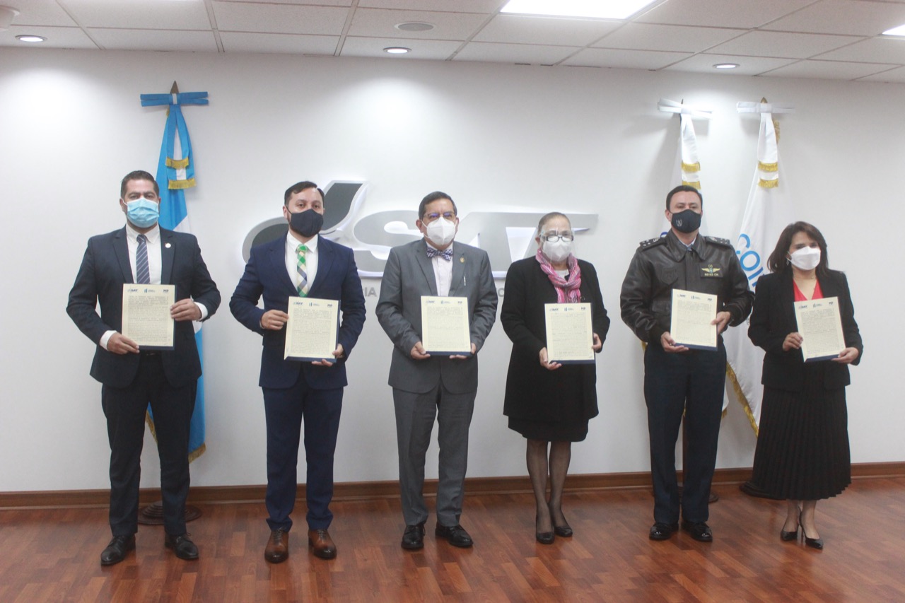 Guatemala, 5 de enero de 2022. El Ministerio de Comunicaciones, Infraestructura y Vivienda (CIV) participó en la firma de un convenio de cooperación con los Ministerios de: Gobernación (Mingob), Defensa Nacional (Mindef), Salud Pública y Asistencia Social (MSPAS), Ministerio Público (MP), La Superintendencia de Administración Tributaria (SAT), para la administración de los Puestos deControl Interinstitucional (PCI) que busca incrementar la cooperación y coordinación de las instituciones para la habilitación, operación y administración de los PCI, con el objeto de luchar contra la defraudación y el contrabando aduanero.