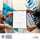 Dra. Zulma Calderón, Secretaria de Obras Sociales de la #SOSEP y la Señora Besem Obenson representante del Alto Comisionado de las Naciones Unidas para los Refugiados -ACNUR- realizaron la firma de carta de entendimiento de cooperación interinstitucional con el objetivo de fortalecer los procesos de atención y protección de guatemaltecos en condición de movilidad humana.