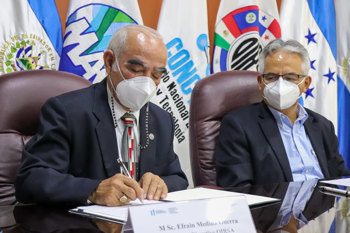 Guatemala 10 de septiembre de 2021. La Secretaría Nacional de Ciencia y Tecnología (Senacyt) firmó un convenio con el Organismo Internacional Regional de Sanidad Agropecuaria (OIRSA), por medio del cual ambas instituciones se comprometieron a trabajar en conjunto proyectos para promover la productividad y la competitividad.