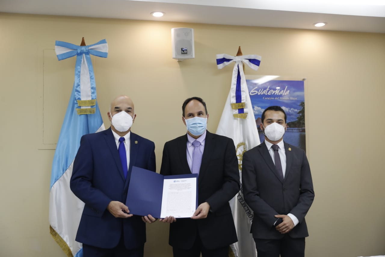 La Comisión Presidencial de Gobierno Abierto y Electrónico, Ing. Enrique Cossich, junto al Director General, Amador Carballido entre La Asociación Guatemalteca De Exportadores -AGEXPORT; participaron en la firma del convenio de cooperación interinstitucional para el diseño, desarrollo, implementación y mantenimiento de la plataforma para la administración de las funciones otorgadas a la comisión dentro del marco de la ley para la simplificación de requisitos y trámites administrativos