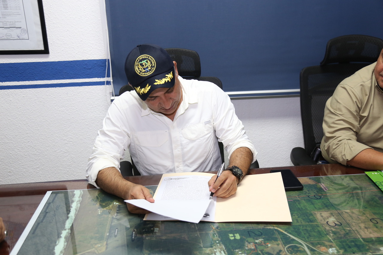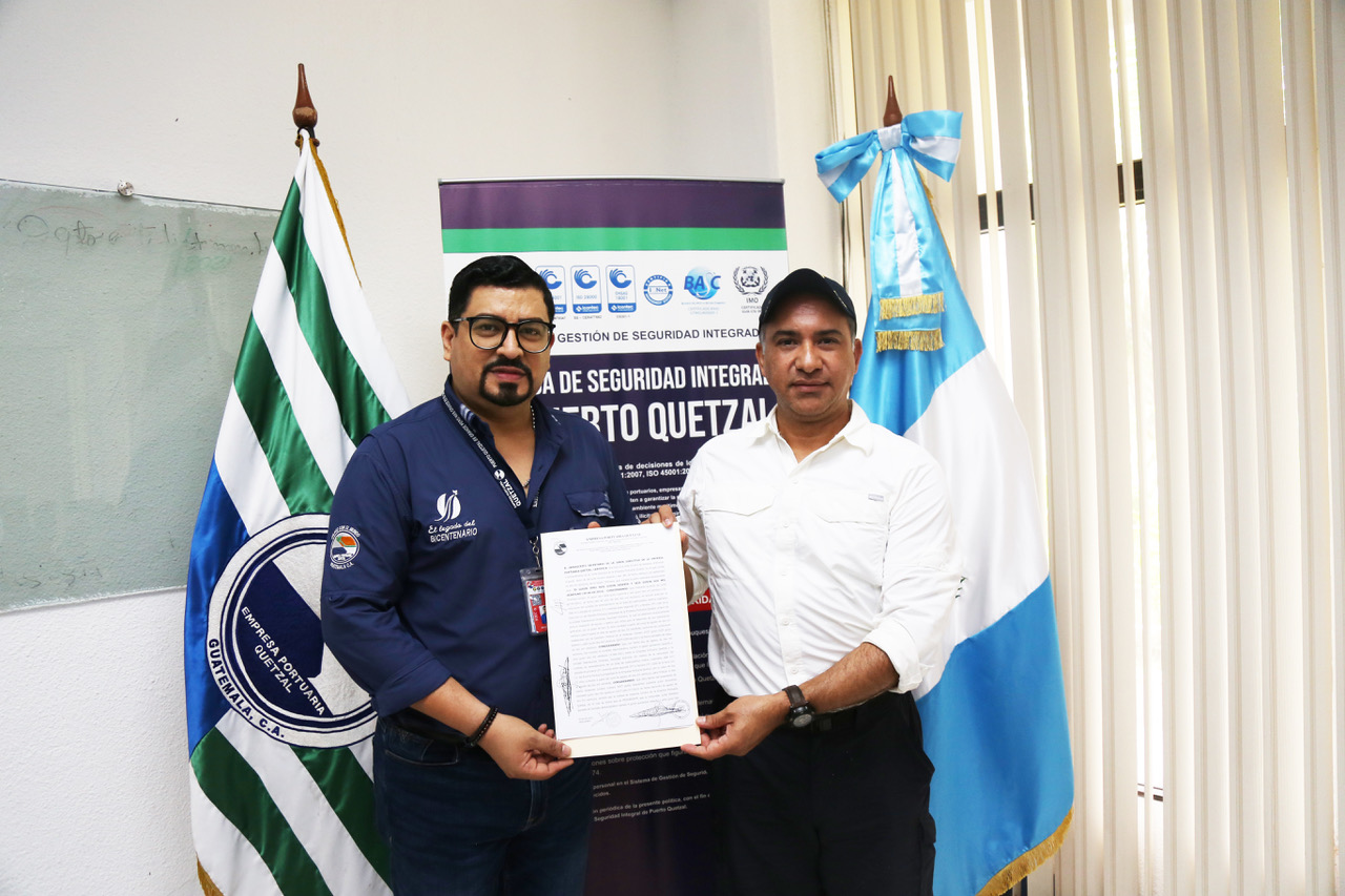 El día sábado 25 de septiembre del presente año se firmó un Convenio Marco que tiene por OBJETO facilitar entre PUERTO QUETZAL y EL MINISTERIO DE AMBIENTE Y RECURSOS NATURALES; todo lo relativo a la solicitud, tramitación y autorización de los instrumentos ambientales con los que tanto Puerto Quetzal, como sus socios comerciales (ARRENDATARIOS, USUFRUCTUARIOS, PRESTADORES DE SERVICIOS BAJO EL RÉGIMEN DE GESTIÓN INDIRECTA Y TERCERAS PARTES) deban contar, con el objetivo de mantener la competitividad comercial que respete, proteja y preserve los aspectos del medio ambiente, a través de acciones que reduzcan el impacto ambiental, en observancia de la normativa legal aplicable. Dentro de las instalaciones de PUERTO QUETZAL funcionará una VENTANILLA UNICA DE GESTION AMBIENTAL para que asesore, apoye y supervise la implementación y el cumplimiento de los requerimientos de protección ambiental a lo interno de la finca portuaria y el establecimiento de los mecanismos de coordinación entre ambas instituciones, Diligenciando de conformidad con la normativa aplicable, los expedientes presentados por PUERTO QUETZAL y sus los socios comerciales, con el fin de facilitar el proceso de pago en el sistema bancario ubicado en Puerto Quetzal, para la obtención de los instrumentos ambientales. Y de esta manera Dar acompañamiento y apoyo técnico en el cumplimiento de normativas ambientales tanto nacionales como internacionales. Por parte del MARN firmó el Sr. Ministro, Licenciado Mario Rojas Espino y por parte de esta empresa, El Licenciado David Berganza, Gerente General.