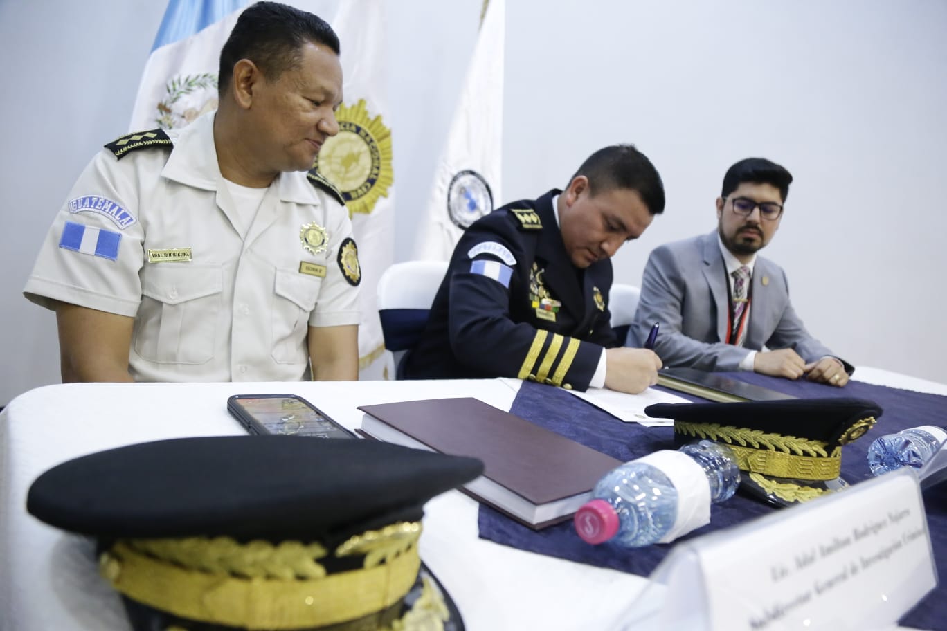 El Director de la Policía Nacional Civil (PNC), Héctor Leonel Hernández, el Subdirector de Investigación, Criminal Adal Rodríguez y el Coordinador Académico del Centro Universitario Suroriente, Jaime Saravia, firmaron esta mañana, una Carta de Entendimiento entre la Policía Nacional Civil (PNC) y la Universidad de San Carlos de Guatemala (Usac), el documento presenta la creación de la primer carrera en ambientes virtuales en el área de la criminología.