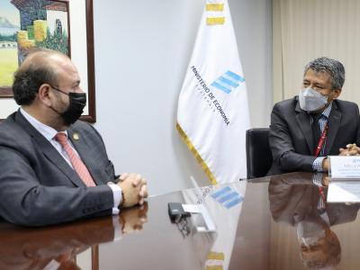 (0) De Izq. a Der. se observa al Ministro de Economía, Antonio Malouf y a Melvyn Allan Tení, representante de CISP.