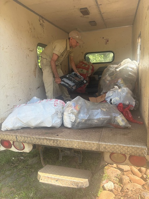 Flores Costa Cuca trabaja por la prevención del dengue con jornada de retiro de chatarra en la aldea Manantial