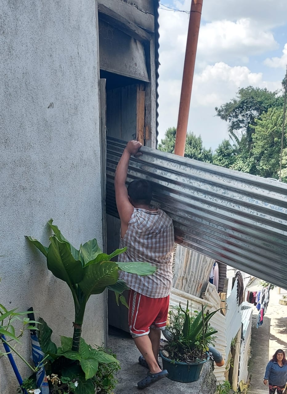 La señora Amanda Isabel Cabrera y su hijo, Walter Hernán Cabrera, perdieron su vivienda a causa de un incendio el pasado 3 de octubre, en el lote 19 colonia Las Vegas, ubicada en la zona 16 capitalina. Por lo que Fodes les proveyó de 20 láminas, 10 costaneras, 150 tornillos y 6 sacos de cemento para su reconstrucción, mediante el Programa de Vivienda Digna -Providi-.