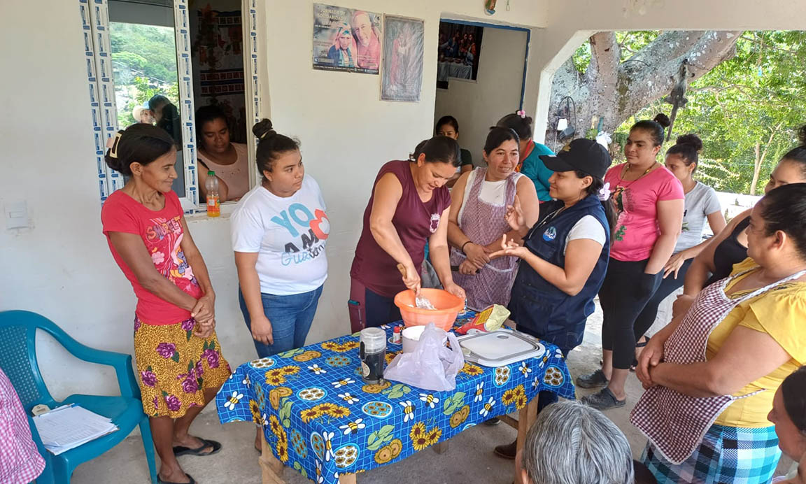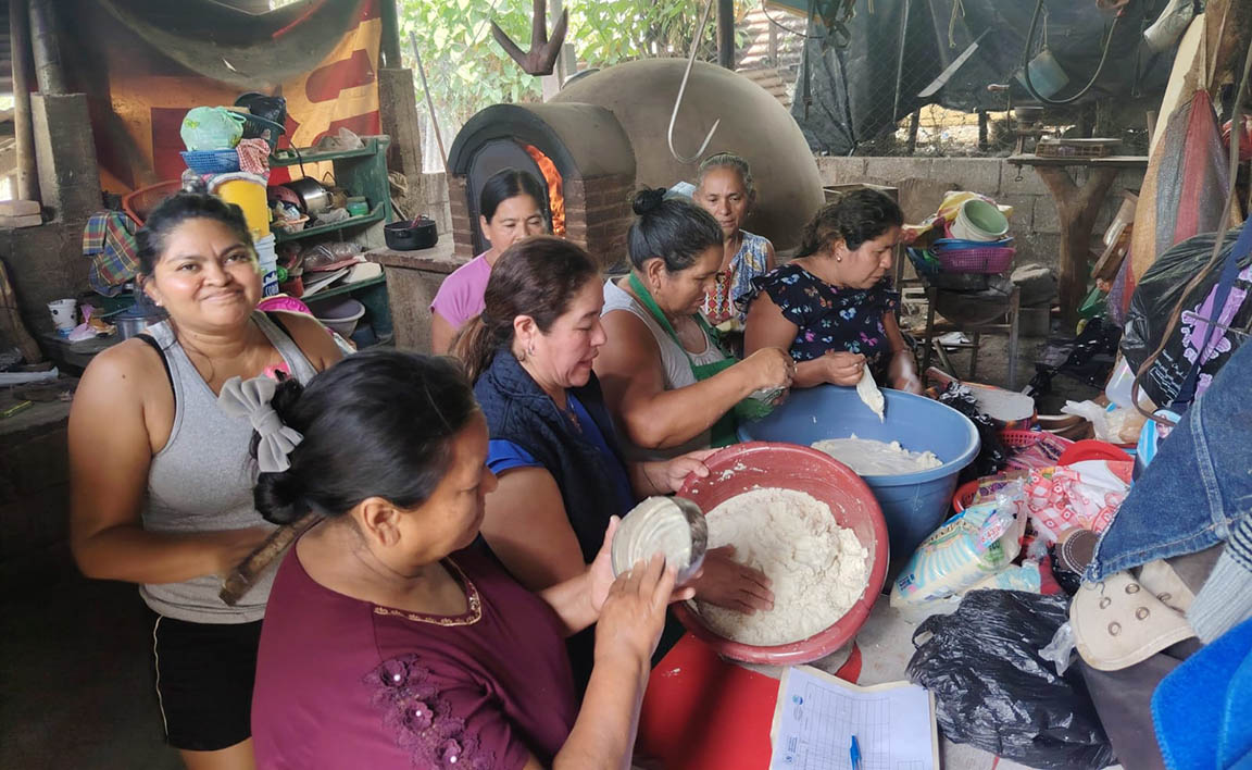 En Pueblo Nuevo Viñas, las familias aprendieron la elaboración de pan de maíz artesanal, un alimento que aporta vitaminas esenciales para fortalecer el sistema inmunológico.
