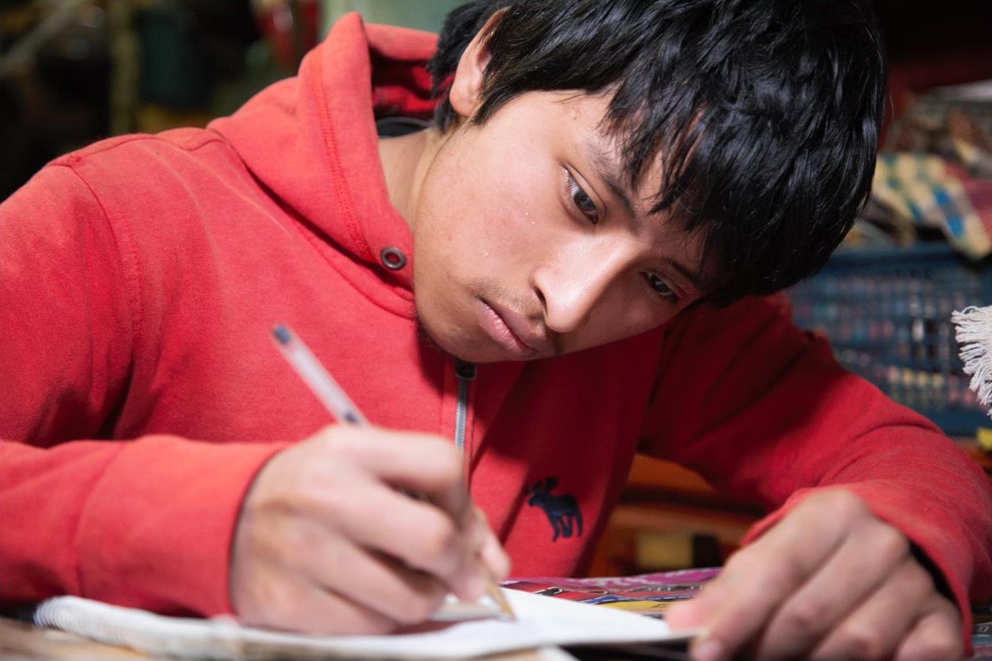 David Ernesto Chumili Bate cursa actualmente cuatro diversificado de Perito Contador y gracias al aporte económico que brinda Beca Media, ahora cuenta con servicio de internet, útiles escolares y uniforme completo. El estudiante agradece los beneficios que le ha dado el Mides y aconseja a otros jóvenes: “Que aprovechen para salir adelante y ayudar a su familia”.