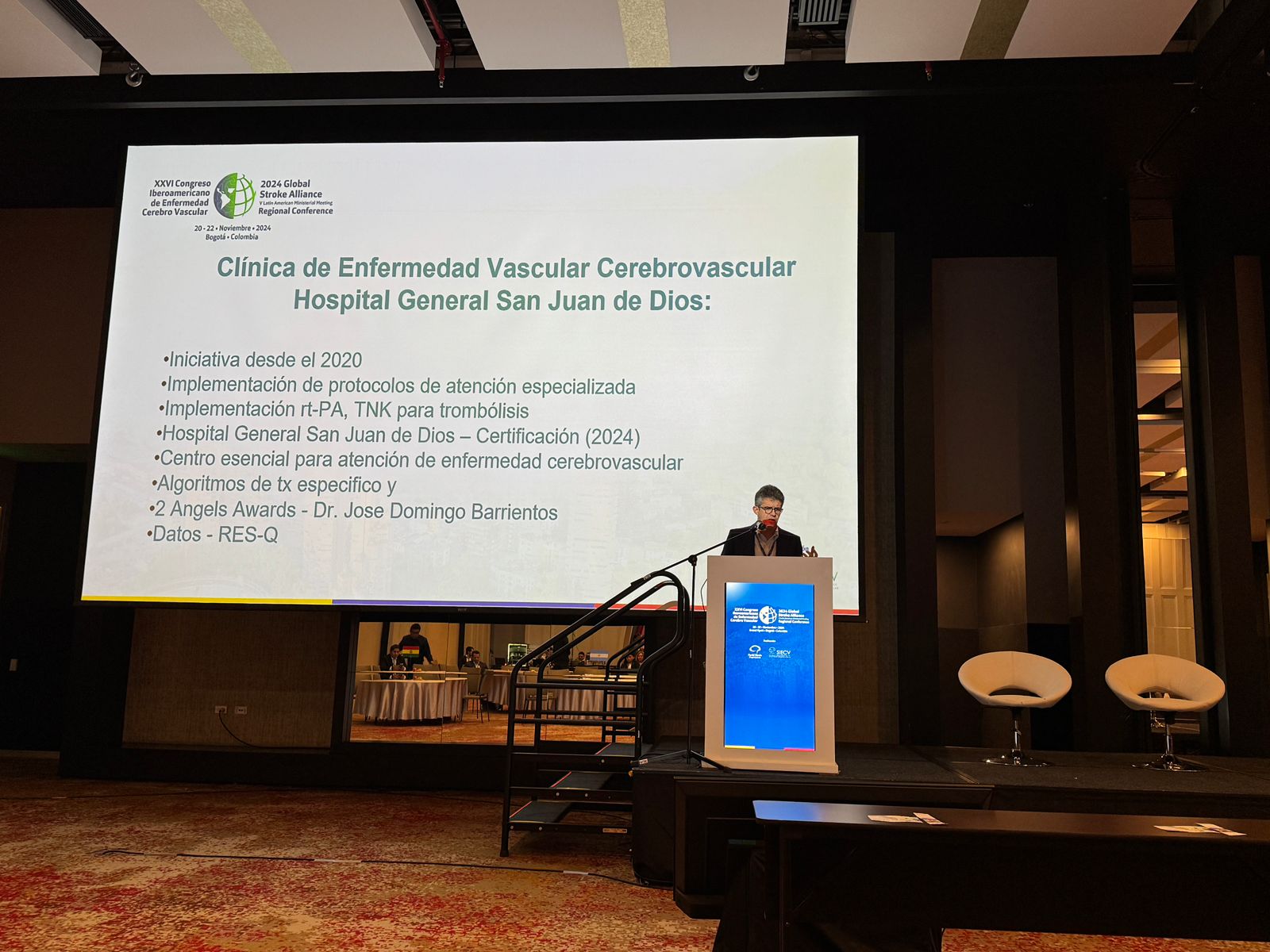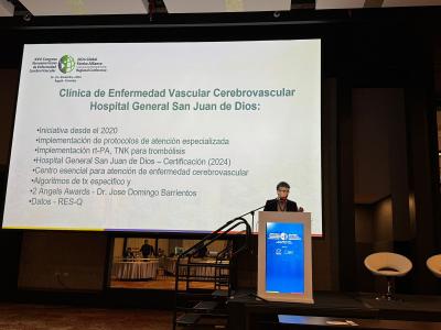 También presentó la experiencia del Hospital General San Juan de Dios en su avance a la atención de la enfermedad cerebrovascular, “el hospital cuenta con un Departamento de Neurología y Neurociencias el cual está equipado con un equipo altamente calificado para atender trastornos neurológicos complejos”.