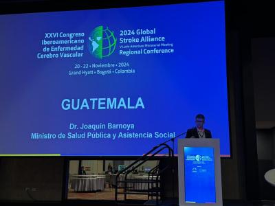 Durante su ponencia en el evento inaugural, el ministro de Salud expuso a los presentes acerca de la labor que realiza el sistema de salud de Guatemala respecto a la enfermedad cerebrovascular y factores de riesgo, entre otros.