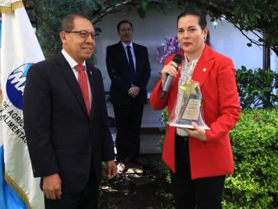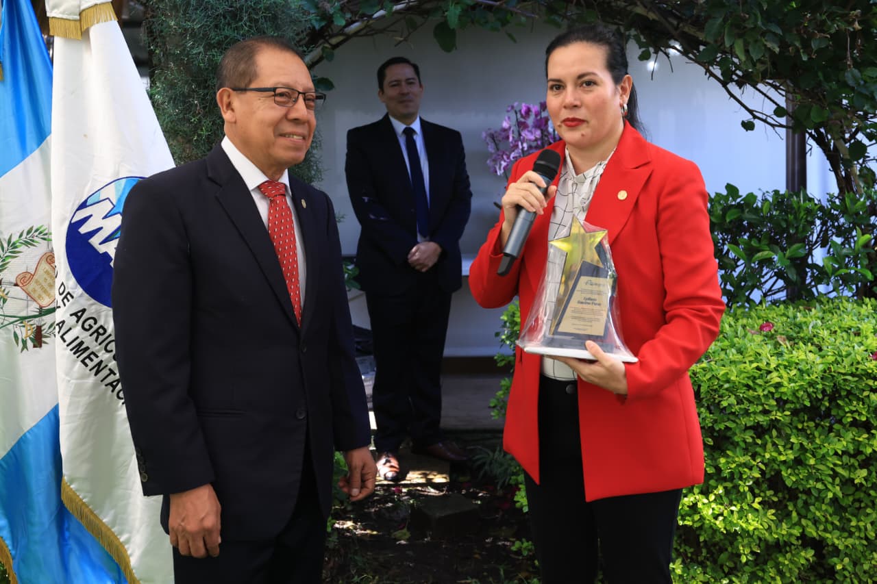 En el marco del aniversario, se entregaron reconocimientos institucionales por trayectoria y contribuciones destacadas. La ministra Rivera Dávila fue homenajeada por el gerente de FONAGRO, Leopoldo Chuc, mientras que Epifanio Ramírez y Mirna Asencio recibieron distinciones por parte de autoridades del MAGA.