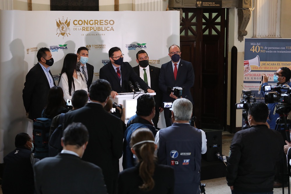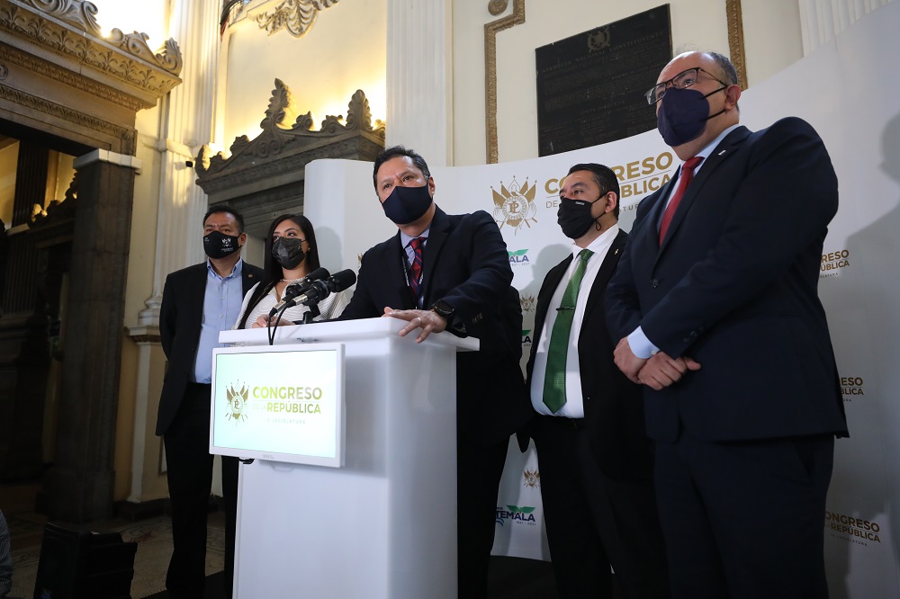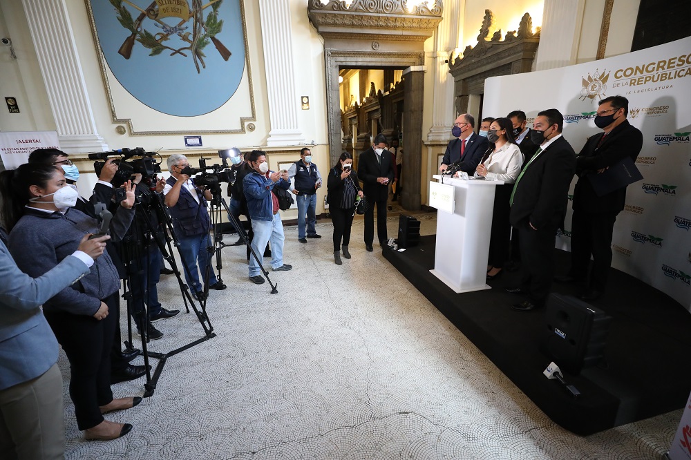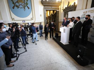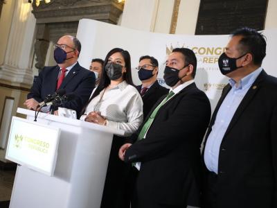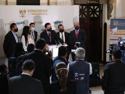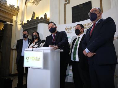(5229) Diputados de la Comisión de la Mipyme del Congreso y los representantes de MINECO y CHN, durante la conferencia de prensa.