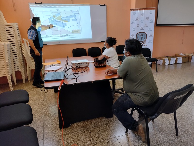 Con la finalidad de solventar las dudas que tenían, las familias que solicitan la regularización y adjudicación de los polígonos 1 y 2 de la Colonia Carlos Ramos, La Alameda, Chimaltenango; personal del área técnica de la Oficina Regional del Fondo de Tierras, presentó los resultados de los estudios de campo que se realizaron para conocer las colindancias, propiedad privada, área comunal, entre otros aspectos; acciones que se realizan previo a iniciar los procesos del Programa de Regularización y Adjudicación de Tierras del Estado y otorgar certeza jurídica de los lotes que actualmente posesionan las personas.