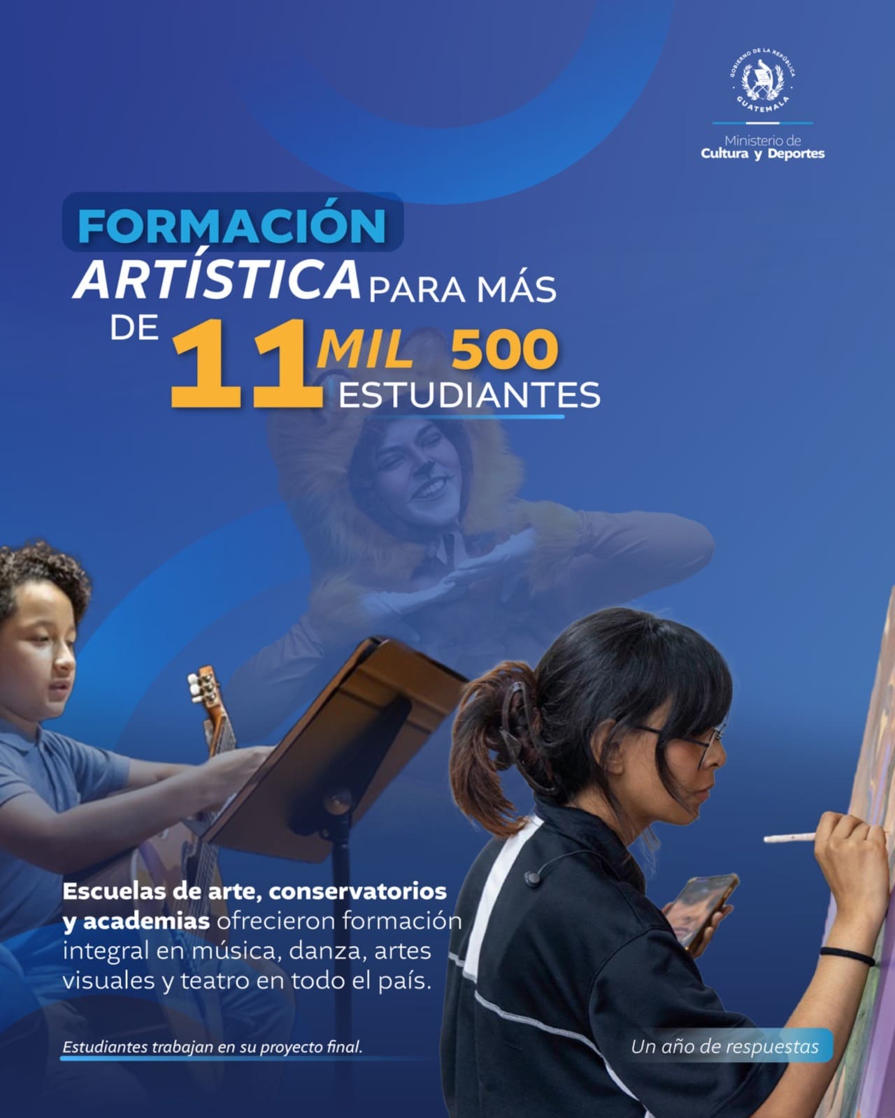 Trabajamos para fortalecer el acceso a las expresiones artísticas a través de las escuelas de arte, conservatorios y academias, que brindaron formación a miles de estudiantes.