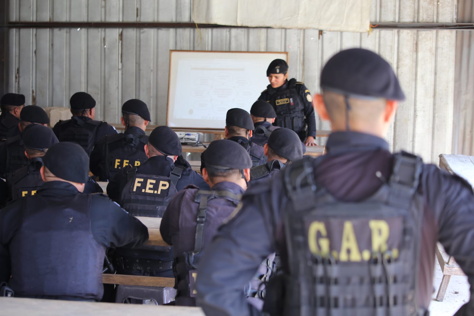 Un grupo de agentes de las Fuerzas Especiales de Policía (FEP), el Grupo de Acción Rápida (GAR) y núcleos de reserva de Comisarías de la Policía Nacional Civil (PNC), participan de una capacitación impartida por personal de la División de Fuerzas Especiales de Policía (Difep), en la Finca El Violón ubicada en Canalitos, zona 24 de la ciudad de Guatemala.