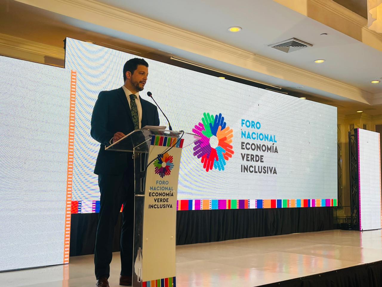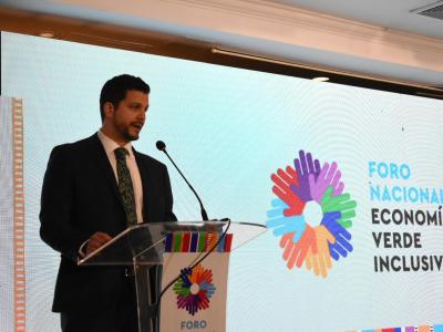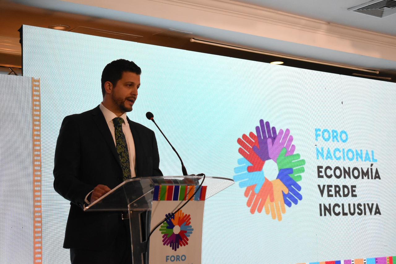 El viceministro de Desarrollo de la MIPYME, Fernando Escalante, en representación del ministro de Economía, Dr. Janio Rosales, participó este martes en el Foro Nacional Economía Verde Inclusiva Evento Presencial De Alto Nivel, organizado por la Alianza para la Acción hacia una Economía Verde (PAGE por sus siglas en inglés).