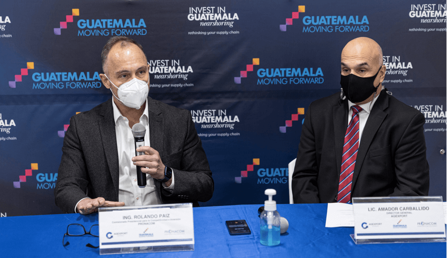 Este miércoles, representantes del Programa Nacional de Competitividad -PRONACOM- y de la Asociación Guatemalteca de Exportadores -AGEXPORT- presentaron el foro de alto nivel: “Invest in Guatemala, Nearshoring 2021: Rethinking your supply chain” el cual reunirá a más de 25 directivos de empresas de capital extranjero, de las industrias priorizadas dentro del plan “Guatemala no se Detiene”, quienes conocerán las ventajas competitivas del país para relocalizar sus cadenas de suministro.