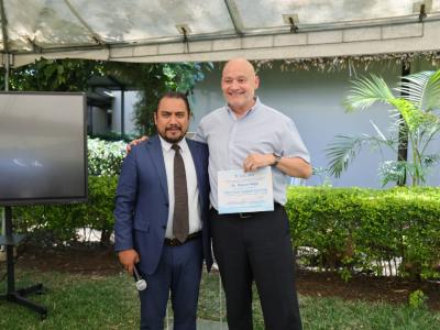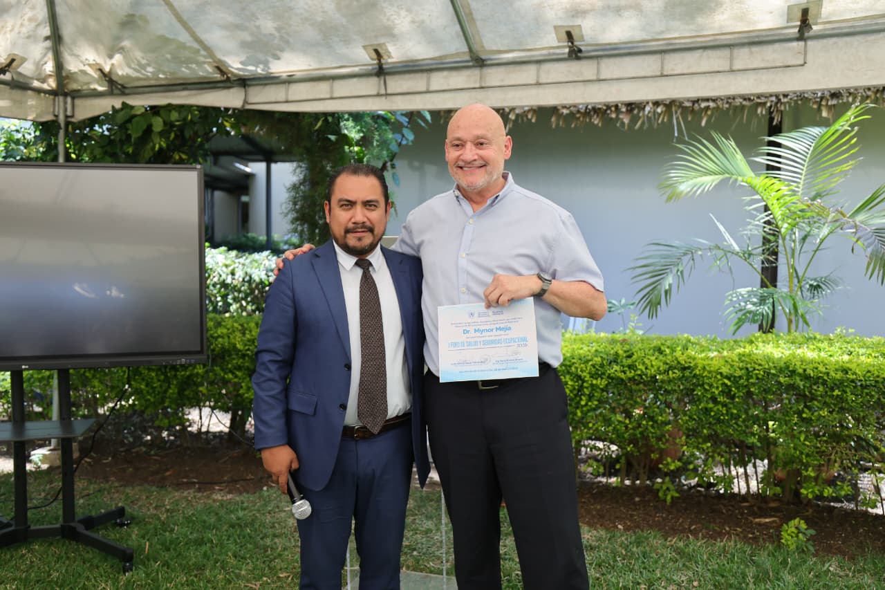 La Dirección de Recursos Humanos del MAGA entregó diplomas de reconocimiento a los expositores participantes en el foro: Mynor Mejía Andrade, jefe de la Sección de Seguridad e Higiene y Prevención de Accidentes del Instituto Guatemalteco de Seguridad Social; Steven Sazo, del Departamento de Salud y Seguridad Ocupacional del Ministerio de Trabajo y Previsión Social; Maribel Torres, médica de la Clínica Médica del edificio Monja Blanca; y William Baldomero, del departamento de seguridad y prevención del Cuerpo de Bomberos Voluntarios de Guatemala.