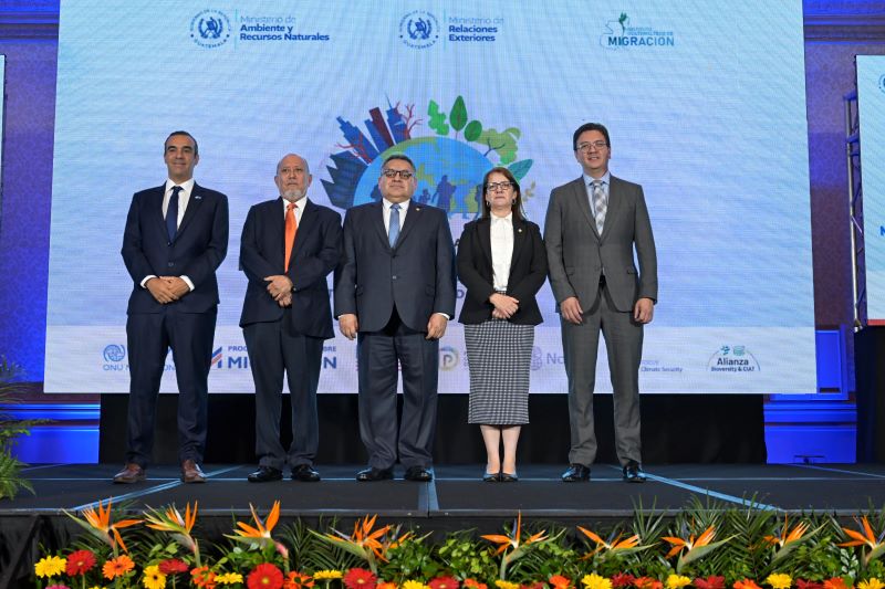 Los ministerios MARN, MINEX Y IGM organizaron el Foro Nacional sobre migración y cambio climático con el apoyo de la OIM. El coloquio busca dialogar sobre movilidad humana y cambio climático, creando sinergias para proyectos locales y políticas públicas.