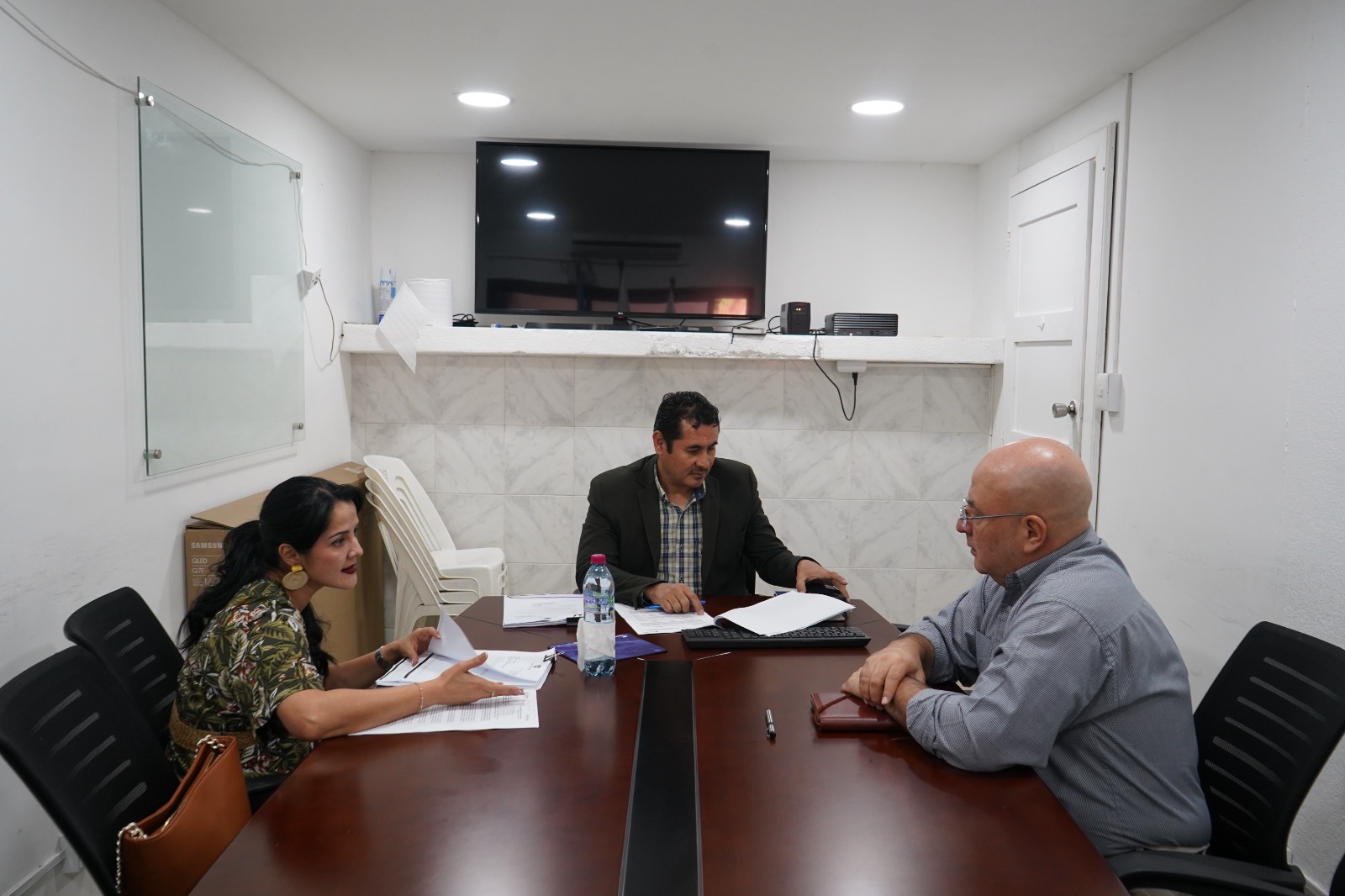 Con el objetivo de fortalecer los procesos de regulación, supervisión y control de las cableoperadoras que operan en Sacatepéquez, el director de la Unidad de Control y Supervisión (UNCOSU), Julio Ponce y Edson Rodríguez, del Departamento Jurídico de la institución, se reunieron con Gabriela Rodríguez, representante de la municipalidad de Sacatepéquez.