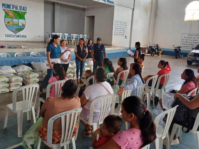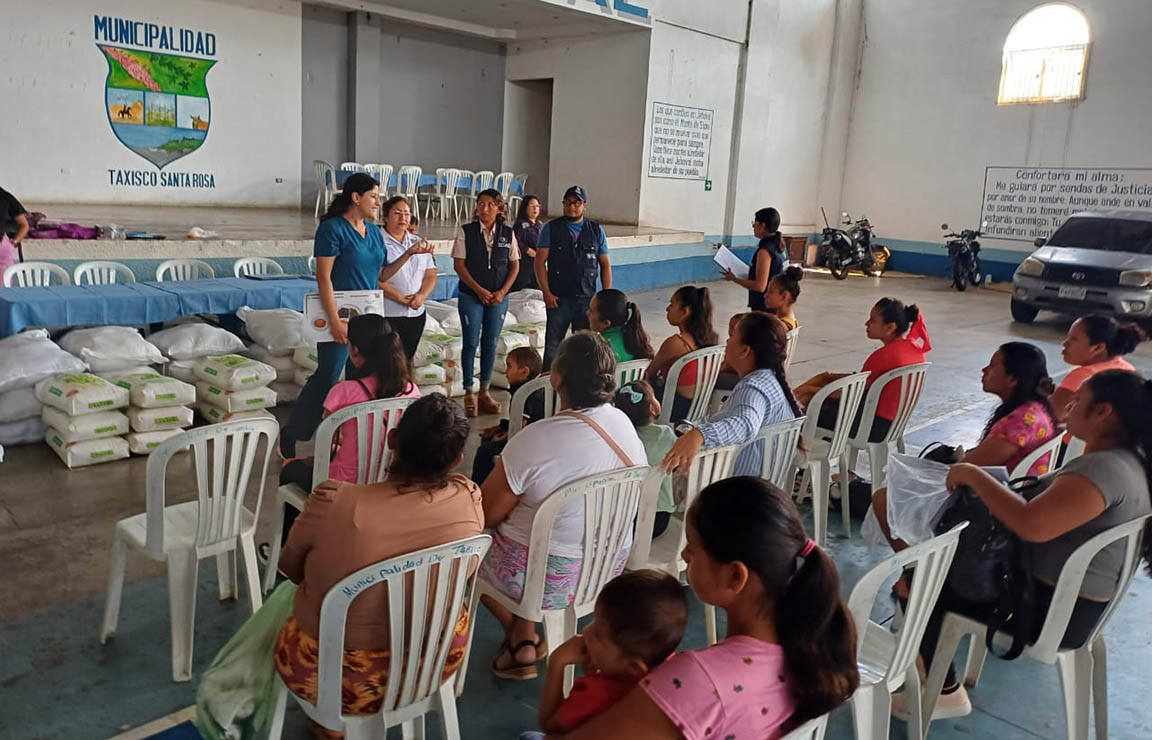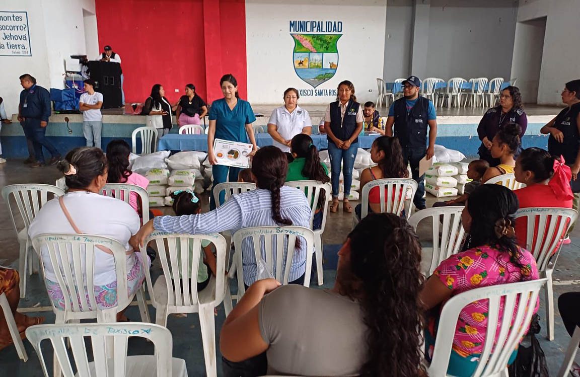 Mientras tanto en Taxisco, Santa Rosa, previo a la entrega de las raciones de alimentos, Ivonne Mendoza, nutricionista del componente de Agricultura Sensible a la Nutrición, brindó información relativa a la alimentación saludable, el plato del buen comer, y prácticas de higiene en la preparación de alimentos. Por parte, del personal de la Secretaría de Seguridad Alimentaria y Nutricional (SESAN) realizó un monitoreo y control de peso a los niños.