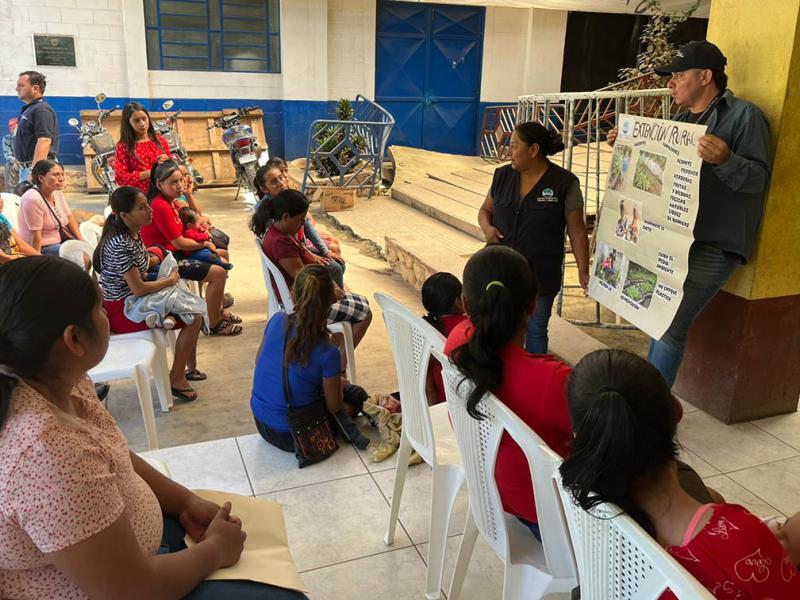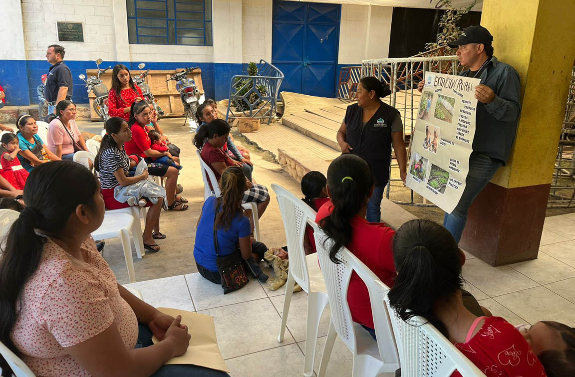 En La Unión, Alba García, educadora de Hogar Rural del MAGA, compartió los beneficios de los huertos familiares para mejorar la disponibilidad y accesibilidad de alimentos.