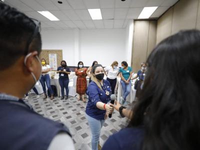 Personal del Ministerio de Salud Pública y Asistencia Social -MSPAS- , del Ministerio de Desarrollo Social -MIDES- y de la Secretaría de Seguridad Alimentaria y Nutricional -SESAN- de Sololá y Totonicapán recibieron el taller “Uso del kit de herramientas de comunicación para la salud y nutrición “Mochila Azul”, en el ámbito de Crecer Sano: Proyecto de Nutrición y Salud en Guatemala.