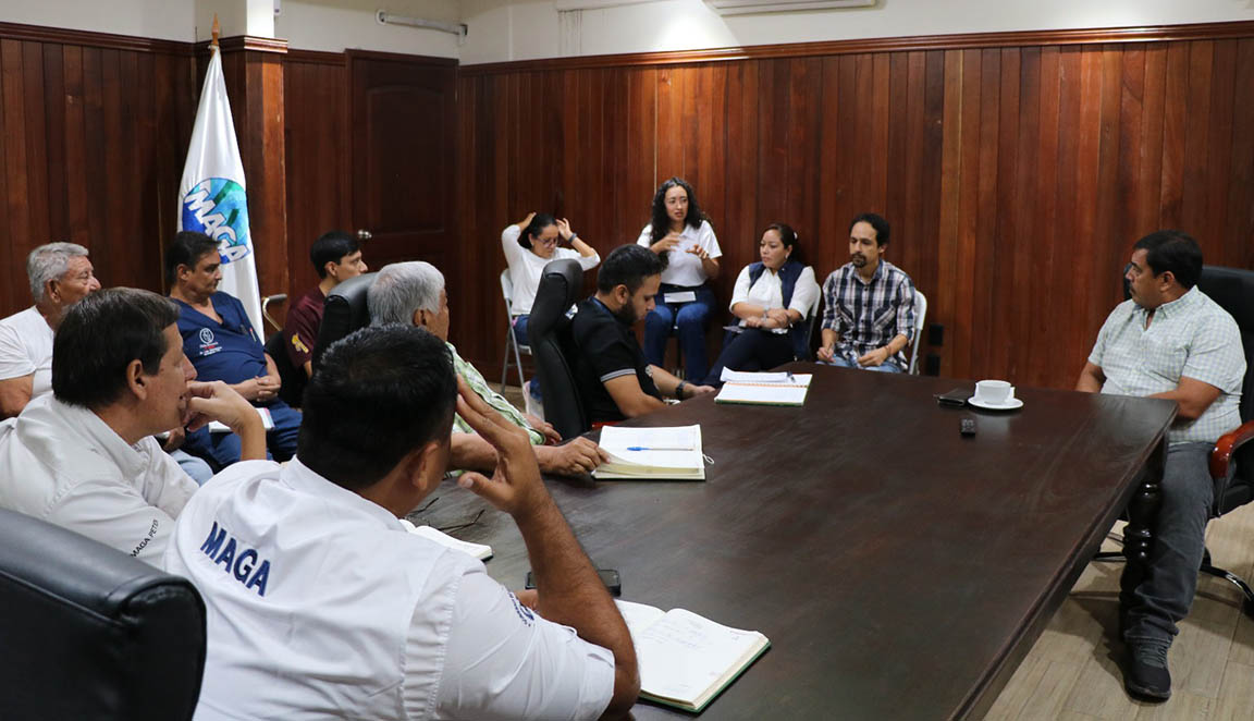 Durante el encuentro, Salazar informó que se trabaja en el fortalecimiento de las brigadas pecuarias en los 14 municipios de Petén, con el objetivo de respaldar a los productores en el cumplimiento de los requisitos sanitarios para la exportación