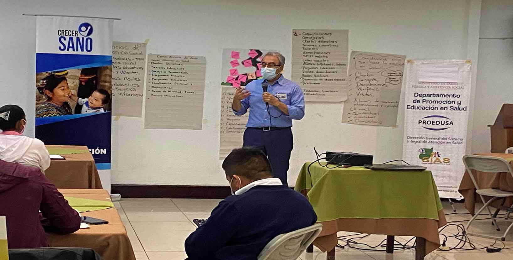 Más de 180 educadores y promotores de la salud de todos los municipios de San Marcos, Alta Verapaz y Huehuetenango fueron capacitados por Crecer Sano: Proyecto de Nutrición y Salud en Guatemala y el Departamento de Promoción y Educación de la Salud, para la implementación de la Estrategia de Comunicación Educativa en Salud que promueve un cambio de comportamiento para tener una vida saludable.