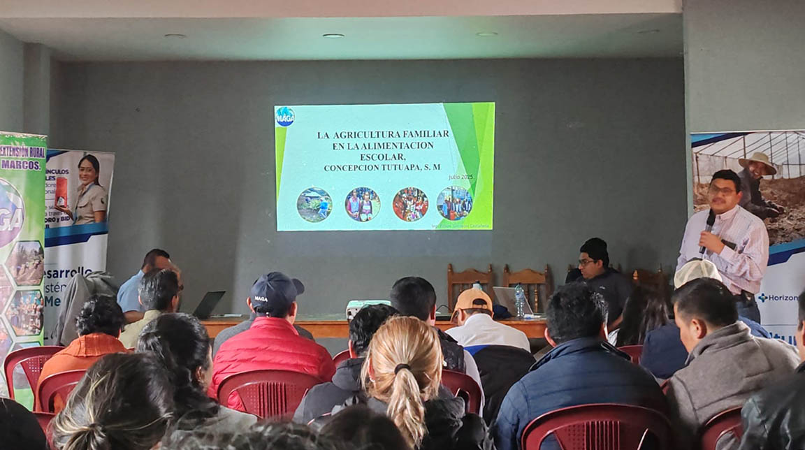 Un taller de sensibilización e integración para fortalecer la coordinación interinstitucional entre el Ministerio de Agricultura, Ganadería y Alimentación (MAGA) y la Dirección Departamental de Educación (DIDEDUC), en el marco de la implementación del Programa de Alimentación Escolar (PAE) se desarrolló en el municipio de Tejutla, San Marcos.